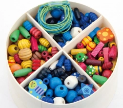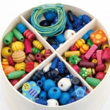 Sada obsahuje drevený box s priehradkami, ideálny na uloženie korálok a šnúrok.