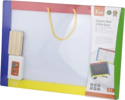 Táto univerzálna tabuľa spája dve kreatívne plochy v jednom – čiernu magnetickú stranu na kriedy a bielu stierateľnú stranu na fixku. Deti môžu písať, kresliť aj trénovať písmenká a číslice; na čiernej strane navyše ľahko prichytia magnetky. V balení nájdete všetko na okamžité použitie: 4 kriedy, stierateľnú fixku a hubku.