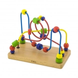 Farebné koráliky na kľukatých dráhach motivujú deti k posúvaniu a triedeniu, čím rozvíjajú úchop, koordináciu oko–ruka a trpezlivosť.