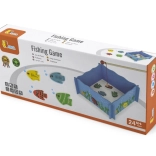 Súprava zahŕňa bazénik s rozmermi cca 35 × 13 × 5 cm, štyri magnetické prúty na spoločnú hru a 20 rybičiek s číslami, ktoré podporujú ranú matematickú gramotnosť a triedenie. Vďaka magnetickým koncovkám je lovenie rybičiek intuitívne a zábavné.