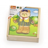 Hľadáte kreatívnu a vzdelávaciu hračku pre malé deti? Drevené puzzle Viga „Obleč medvedíka – dievčatko“ prinášajú zábavné skladanie šiestich rôznych kombinácií výrazov a oblečenia. Deti si hravou formou precvičia motorické zručnosti, koordináciu oko–ruka aj pochopenie emócií.