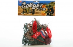 Klasická sada pre malých stratégov: plastoví vojaci v praktickom vrecúšku doplnení o vlajky a zábrany na tvorbu bojiska. Ideálne na kreatívnu hru, rozvoj fantázie a jemnej motoriky. Vhodné od 3 rokov.