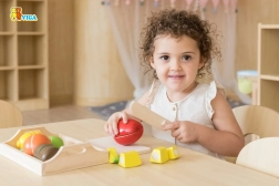 Vďaka suchému zipsu ovocie možno jedným pohybom krájať a znovu spájať, čo podporuje rozvoj jemnej motoriky.