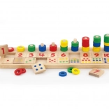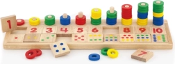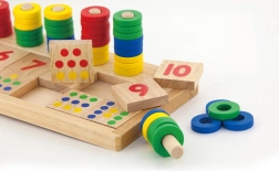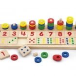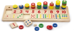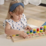 Táto drevená hračka nie je len zábavou, ale aj skvelým vzdelávacím nástrojom. Deti si môžu hrať s očíslovanými dlaždicami a farebnými krúžkami, ktoré podporujú vizuálne a hmatové učebné zručnosti.