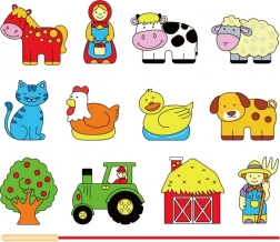 Bloky predstavujú rôzne farmárske tvary ako zvieratá, traktor, stodola a ďalšie, podnecujúce kreatívnu hru a rozprávanie príbehov.