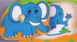 Farebné obrázky leva, zebry, slona a gorily pomáhajú deťom rozpoznávať tvary, farby a názvy zvierat z džungle.