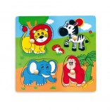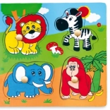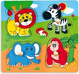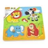 Táto kvalitná drevená vkladačka so safari motívom je ideálna prvá skladačka pre batoľatá. Každý dielik má drevený kolíček na ľahké uchopenie malými rúčkami a zodpovedajúcu siluetu na podkladovej doske pre ľahšiu orientáciu.