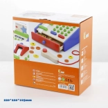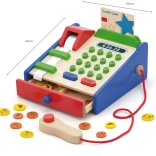 Pokladňa je vyrobená prevažne z dreva a doplnená odolnými plastovými prvkami. Ideálna na hru na obchod doma aj v škôlke, kde prirodzene rozvíja logické myslenie, poznávacie zručnosti a vzťah k číslam v duchu Montessori.