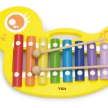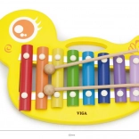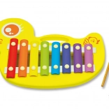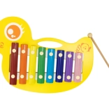 Tento roztomilý detský xylofón v tvare kačičky zaujme živými farbami a ergonomickým tvarom s madlom na jednoduché prenášanie. Kovové farebné klapky vytvárajú jasné tóny, ktoré deti motivujú objavovať rytmus a prvé melódie.
