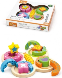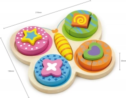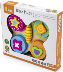 Rozkošné drevené puzzle v tvare motýlika prináša deťom od 2 rokov hodiny zábavy aj učenia. Vďaka jasným farbám, veľkým bezpečným dielikom a vyfrézovaným okrajom diely skvele držia na mieste. Hračka podporuje jemnú motoriku, koordináciu oko–ruka a tvorivosť.
