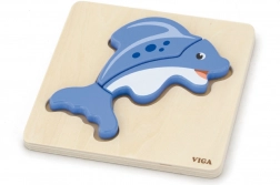 Táto drevená puzzle vkladačka s modrým delfínom je skvelou voľbou pre prvé skladania. Vďaka robustnej drevenej podložke a dobre padnúcim dielikom si deti ľahko precvičia koordináciu oko–ruka a trpezlivosť. Hračka je navrhnutá s ohľadom na bezpečie a dlhú životnosť.