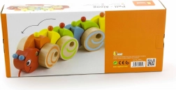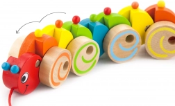 Táto veselá drevená húsenica je ideálna hračka pre batoľatá. Pestrofarebné segmenty sa pri jazde pohybujú a rotujú, čo deti motivuje k chôdzi aj aktívnej hre. Pevná konštrukcia a hladké hrany zabezpečujú bezpečné používanie v detských rúčkach.