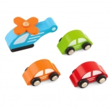 Súčasťou balenia sú 3 drevené autíčka a helikoptéra, takže môžete začať hrať hneď po vybalení. Bezpečné zaoblené tvary a odolné materiály sú ideálne na každodenné hranie.