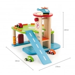 Táto kvalitná drevená garáž ponúka viac úrovní parkovania, pristávaciu plochu pre helikoptéru a praktický výťah na jednoduché presúvanie autíčok medzi poschodiami. Vďaka premyslenému dizajnu s dráhami, značkami a doplnkami si deti precvičia koordináciu pohybov a rozvinú svoju predstavivosť.