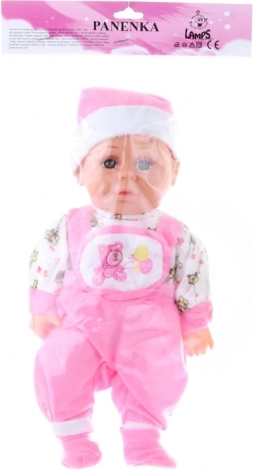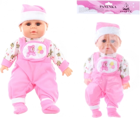 Súčasťou je ružové pyžamko so suchým zipsom, ktoré možno ľahko zložiť a znovu obliecť. Kompaktné rozmery cca 30 × 15 × 6 cm sú ideálne pre malé detské ruky. Hračka podporuje rozvoj empatie, fantázie a jemnej motoriky.
