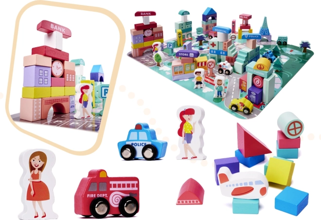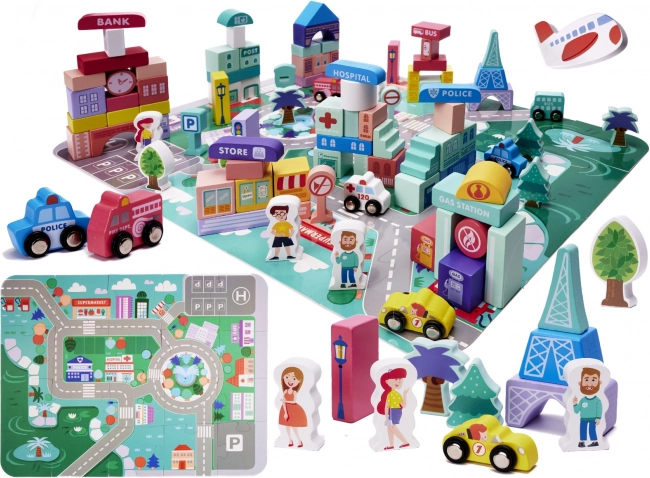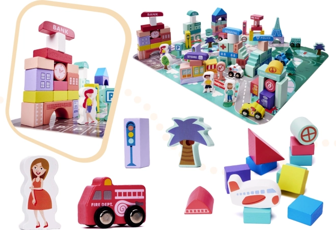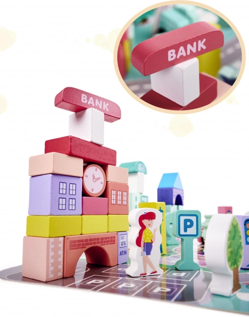 Súčasťou stavebnice sú rôzne budovy ako banka, nemocnica, policajná stanica a pošta. Nechajte deti tvoriť a hrať sa ako skutoční architekti.