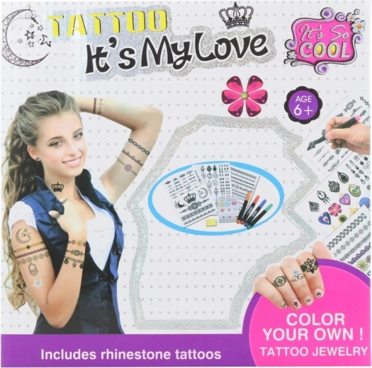 Vytvorte si vlastný dočasný body art s touto kreatívnou tetovacou sadou pre deti od 6 rokov. Obsahuje až 115 dizajnov, 6 farebných tetovacích fixiek, ozdobné kamienky a hubku na jednoduchú aplikáciu. Skvelé na trblietavé tetovanie, zdobenie rúk aj paží a rozvoj fantázie a kreativity.