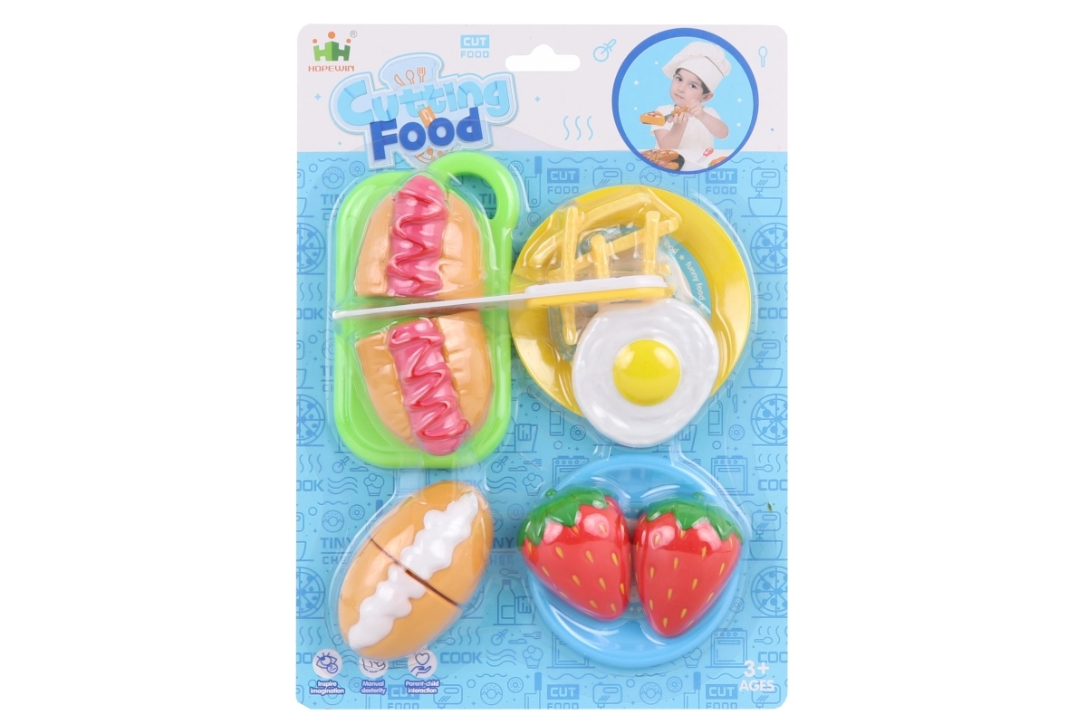 Táto kreatívna súprava na krájanie potravín prináša deťom realistický zážitok z prípravy jedla. Jednotlivé kúsky sú spojené suchým zipsom, takže ich možno ľahko „rozkrájať“ a znovu spojiť – zábava sa tak nikdy neomrzí a zároveň podporuje rozvoj motorických zručností.