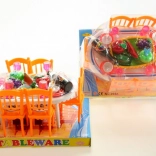 - Kompletný set: stolček, 6 stoličiek, riadik a jedlo.