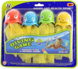 Sada potápačských chobotničiek je ideálnou pomôckou pre deti, ktoré sa učia potápať a zlepšujú istotu vo vode. Vďaka odlišným číslam na každej chobotničke možno jednoducho vytvárať bodované hry, súťaže aj jednoduché cvičenia koordinácie a zadržiavania dychu. Farebné prevedenie napomáha k dobrej viditeľnosti pod vodou.
