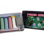 Kompletná veľká pokerová sada v odolnej plechovej krabičke pre domáce turnaje aj zábavu s priateľmi. Obsahuje všetko, čo potrebujete: hracie karty, žetóny, podložku a návod. Kompaktné balenie sa ľahko prenáša a je ideálnym darčekom pre milovníkov pokru.