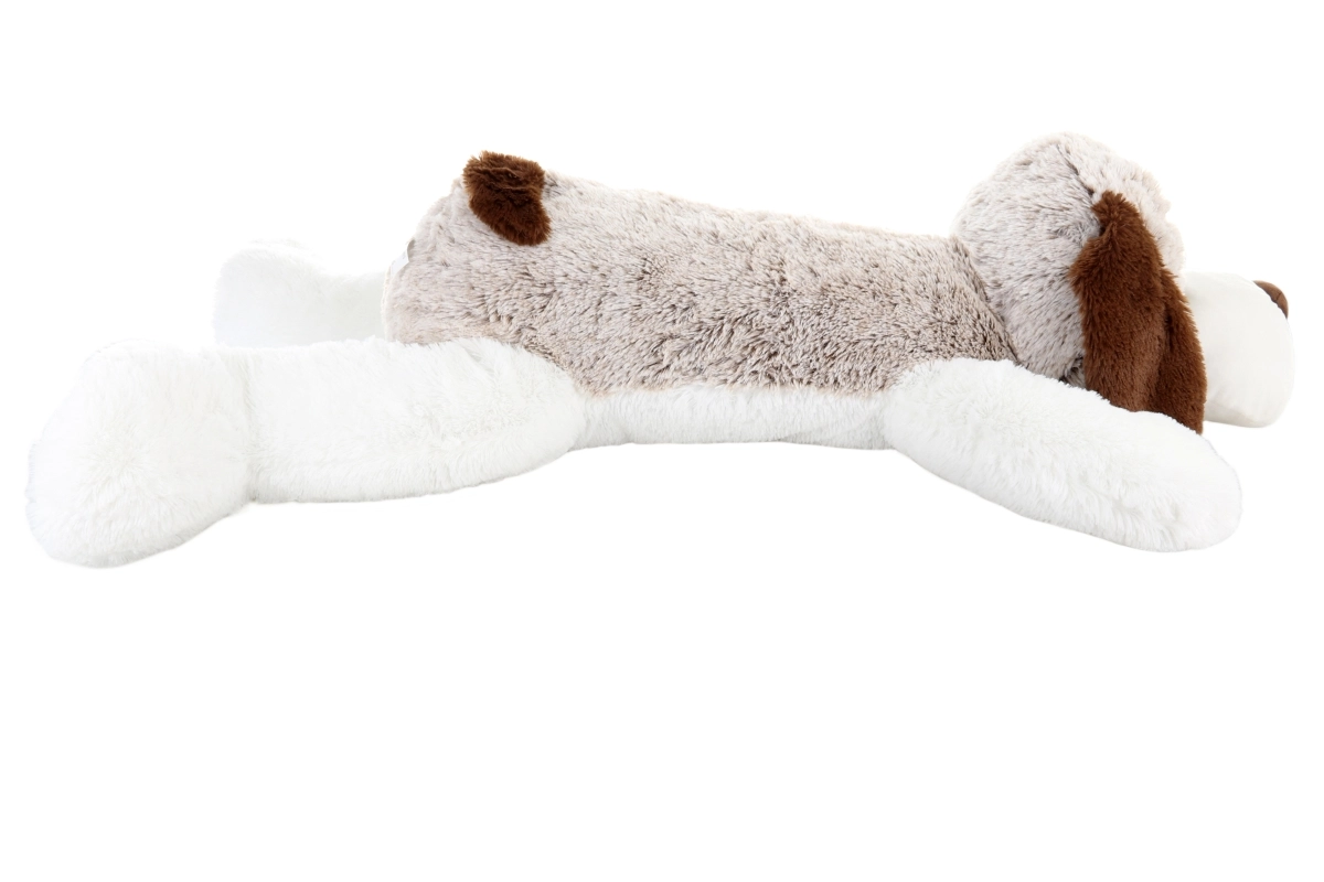 Roztomilý plyšový pes s dĺžkou 100 cm je ideálny parťák na maznanie aj dekoráciu detskej izby. Vyrobený z mimoriadne hebkého a mäkkého plyšu, s priateľským výrazom a plochým tvarom pre pohodlné objímanie. Vhodné pre deti od 0+.