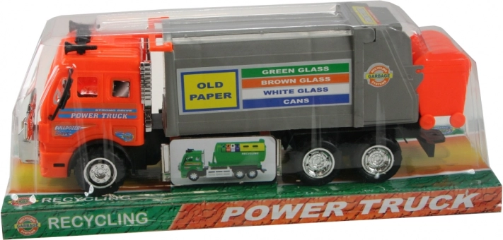 Plastové smetiarske auto na zotrvačník, dĺžka cca 27 cm. Odolná hračka pre deti od 3 rokov, podporuje fantáziu a motoriku. Skvelá zábava každý deň.