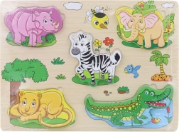 Objavte zábavnú drevenú vkladačku s motívmi safari, ktorá rozvíja jemnú motoriku, poznávanie tvarov a zvieratiek a podporuje logické myslenie detí od 3 rokov. Kvalitné drevené prevedenie a farebné ilustrácie lákajú k hre znova a znova.