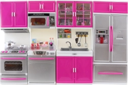 Táto štýlová detská kuchynka v ružovo-bielom prevedení ponúka všetko, čo malé kuchárky a kuchári potrebujú k nápaditej hre. Set obsahuje sporák na batérie, mikrovlnku, chladničku, drez, skrinky aj bohaté príslušenstvo. Vďaka realistickým prvkom si deti precvičia jemnú motoriku a rozvíjajú fantáziu.