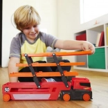 Mega Transportér Hot Wheels 50. výročie je veľký hrací kamión, ktorý prináša veľa zábavy a úžasných dobrodružstiev. S jeho šiestimi rozšíriteľnými úrovňami pojme až 50 autíčok a je zdobený špeciálnymi grafikami k 50. výročiu značky.