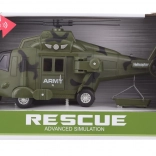 Vojenská helikoptéra na batérie so svetlom a zvukom. Helikoptéra má navijací hák, otočnú vrtuľu a otočné predné svetlo. Napájanie 3x AG13 (sú súčasťou balenia). Rozmer helikoptéry cca 28 × 14 cm. Rozmery balenia cca 32 × 12 × 19 cm. Vek 3+