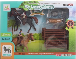 2 kone, 2 jazdci, ohrada a ďalšie doplnky