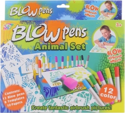S touto veľkou sadou fúkacích fixiek deti ľahko vytvoria originálne obrázky so zvieratami zo safari. Vďaka nadstavcu s pumpičkou nie je potrebný silný dych – farba sa nanáša jemným prúdom a vytvára efektné prechody a tieňovanie. Praktický podstavec a držiak udržia fixky prehľadne pokope.