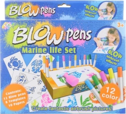 Táto bohatá sada fúkacích fixiek je skvelá na prvé výtvarné pokusy aj zábavné tvorenie s deťmi. Vďaka šablónam s morskými motívmi a nadstavcu na fúkanie s pumpičkou vznikajú plynulé farebné prechody aj efektné sprejové vzory bez námahy.