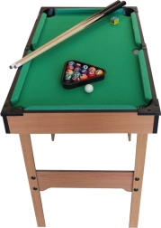 Kompaktný detský biliard v kvalitnom drevenom prevedení prináša skvelú zábavu pre malých aj veľkých hráčov. Súčasťou balenia sú 2 tága, 16 biliardových gulí a kompletné príslušenstvo. Vďaka rozmerom je ideálny do detskej izby a na prvé zoznámenie s pravidlami hry.