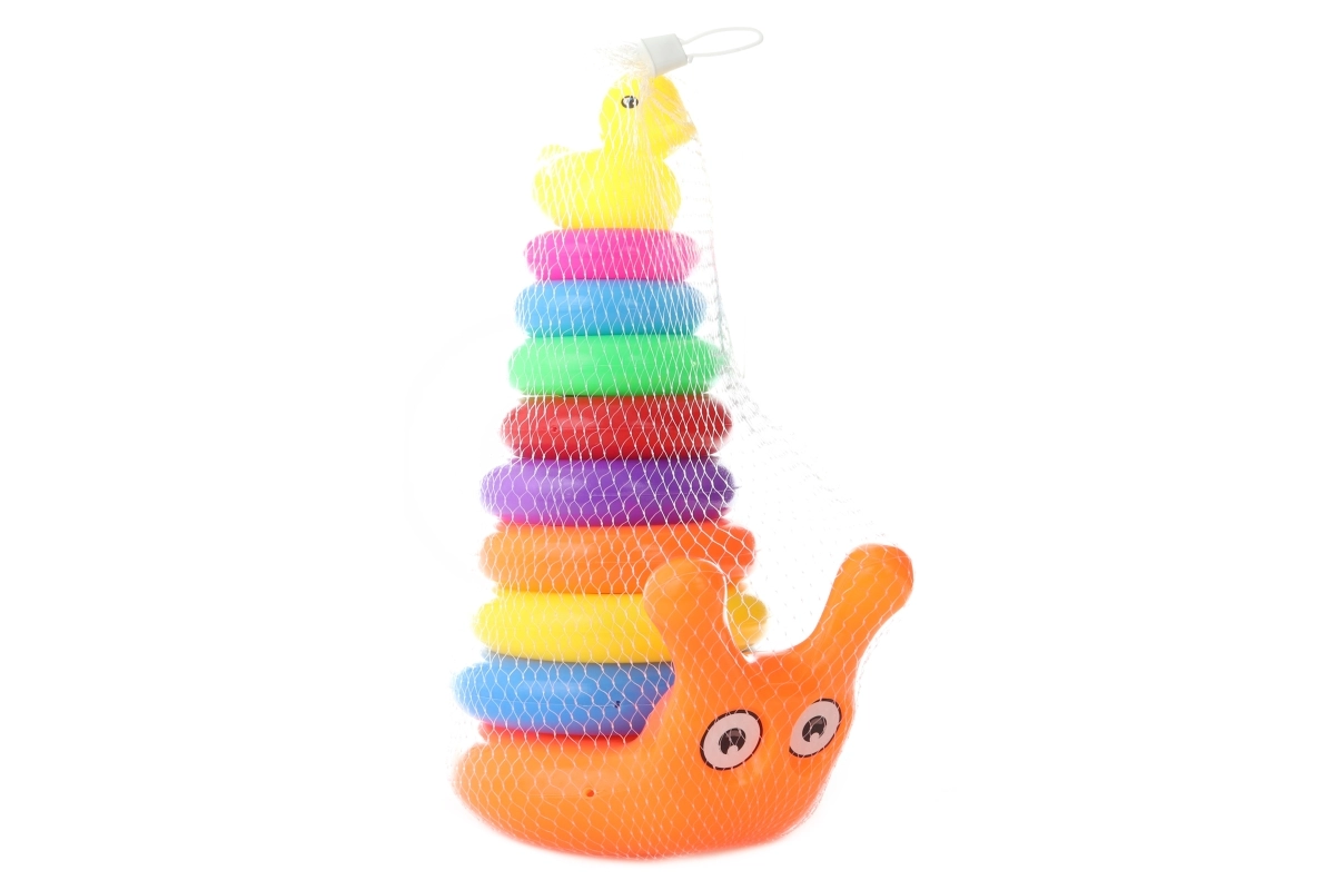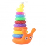 Roztomilý stĺp s krúžkami v tvare slimáka poteší každé batoľa. Vďaka postupnému navliekaníu krúžkov si deti precvičia trpezlivosť, logické myslenie a zručnosť. Posledným dielom je plastová kačička, ktorá dáva hre zábavný a motivujúci cieľ.