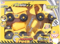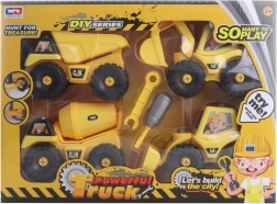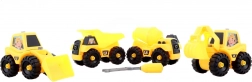Postavte si vlastné stavenisko s farebnou súpravou skrutkovacích áut. Deti ľahko zostavia aj rozoberú nakladač, bager, miešačku a vyklápač pomocou dodaného skrutkovača a kľúča. Hra podporuje kreativitu, koordinačné zručnosti a učí trpezlivosti formou zábavy.