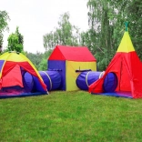 Farebná hracia zostava 5v1 od IPLAY premení izbu aj záhradu na svet dobrodružstiev. Obsahuje 3 stany (tipi, domček, iglu) prepojené 2 tunelmi, ktoré možno ľubovoľne kombinovať alebo používať samostatne. Ľahká konštrukcia, jednoduché skladanie, vodoodolná podlaha a odolná 100% polyesterová tkanina zaistia bezpečnú a aktívnu zábavu pre deti od 3 rokov.