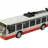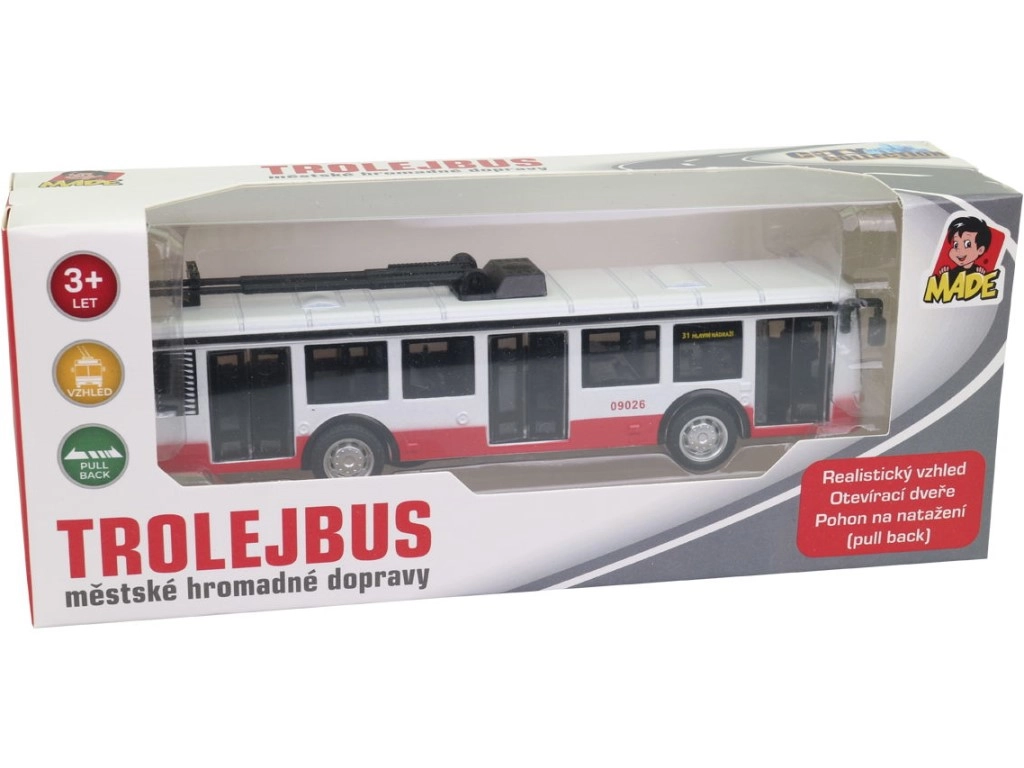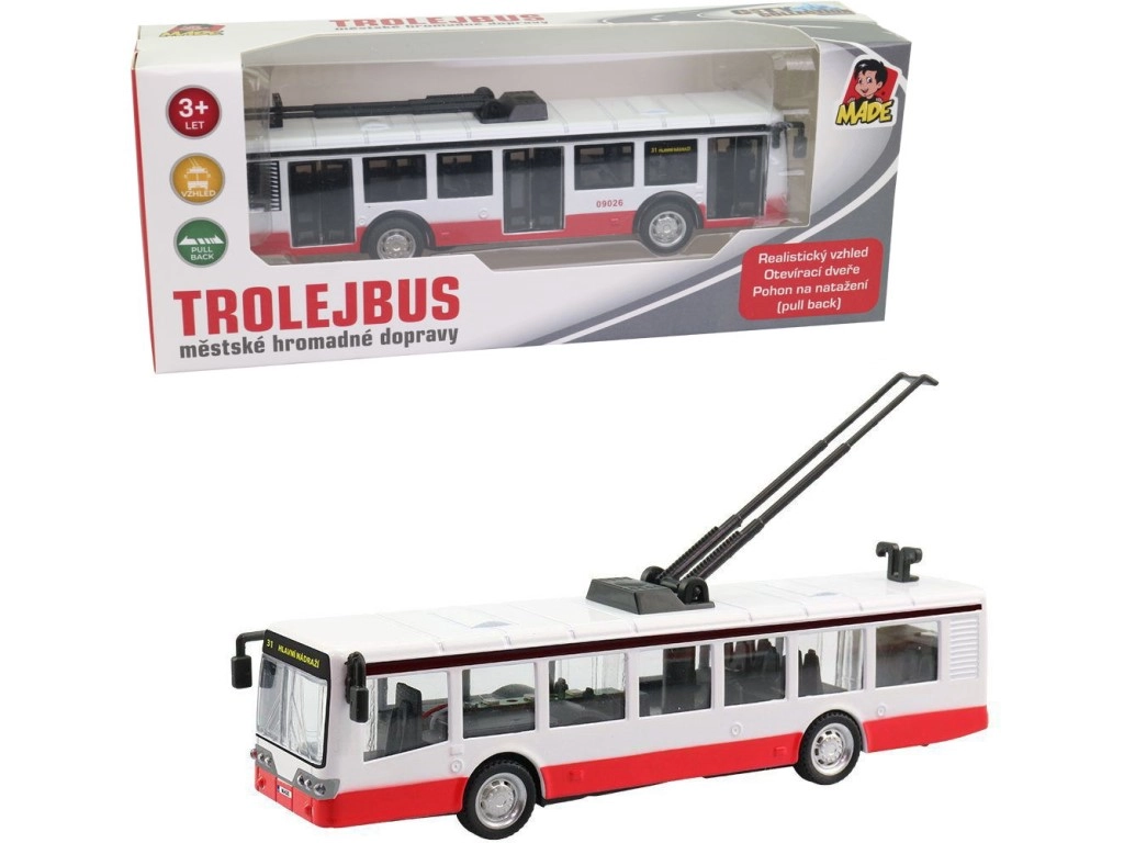 Objavte detailne spracovaný trolejbus v tradičnej červeno-bielo-čiernej kombinácii, akú poznáte z niektorých českých miest. Model je vyrobený z kvalitného kovu doplneného plastovými prvkami, takže je zároveň pevný aj ľahký do detskej ruky. Vďaka spätnému natiahnutiu sa trolejbus po pustení sám rozbehne a poskytne množstvo zábavy.