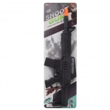 Zábavný a bezpečný plastový samopal pre deti s dĺžkou 40 cm v čiernom prevedení. Po stlačení spúšte vydáva realistický zvuk streľby bez batérií. Ideálna hračka na akčné hry na vojakov, vhodná od 3 rokov.