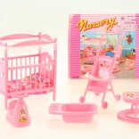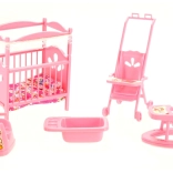 Kompletná sada do detskej izbičky pre bábiky GLORIE poteší každého malého opatrovateľa. Nájdete v nej postieľku s perinkou a vankúšikom, kočík, chodítko, nočník a vaničku – všetko z odolného plastu a vo veľkostiach ideálnych na hru. Skvelé na rozvoj fantázie a hraní rolí. Vhodné od 3 rokov.