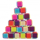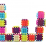 Pestré farby a ľahko spojiteľné kocky inšpirujú deti k tvorbe veží, domčekov aj fantastických objektov.