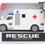 Realistická plastová sanitka na batérie poteší malých záchranárov. Po stlačení tlačidiel na streche svieti a vydáva zvuky, má otváracie dvere a je pripravená do akcie. Súčasťou sú 3 batérie AG13.