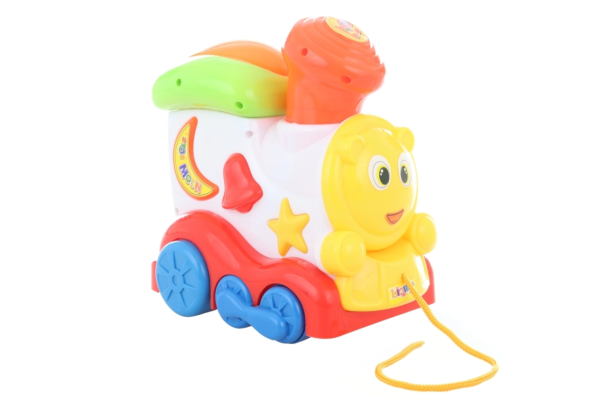 Zábavná ťahacia mašinka z plastu pre najmenších, ktorá pri pohybe a stlačení komína vydáva veselé pískanie. Ideálna na rozvoj motoriky a zmyslovej stimulácie. Veľkosť cca 20 × 17 cm, ľahká a ľahko uchopiteľná pre deti od 18 mesiacov.