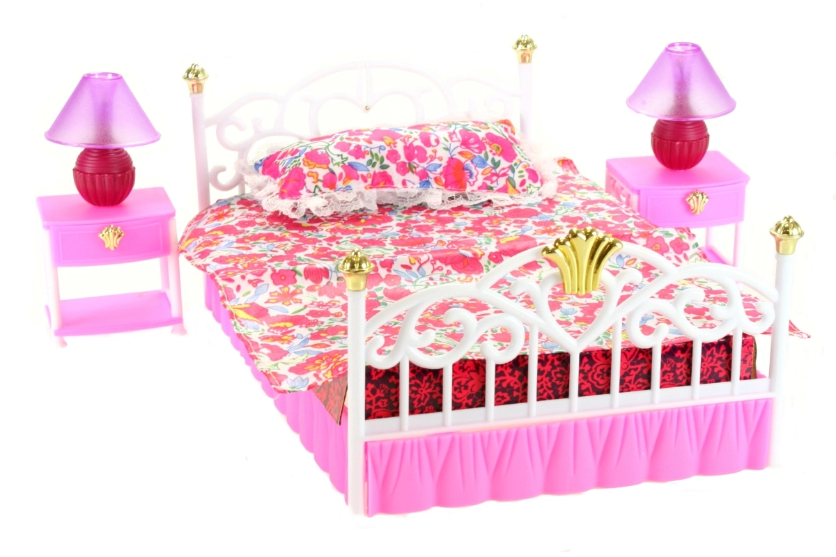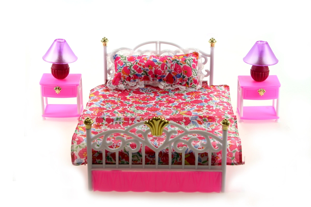 Doprajte deťom realistickú zábavu so spálňovou sadou pre bábiky GLORIE. Elegantná postieľka s prehozom a mäkkým vankúšikom vytvára pohodlné miesto na odpočinok bábiky, zatiaľ čo dva nočné stolíky s praktickými zásuvkami ponúknu priestor na drobné doplnky. Každý stolík je vybavený lampičkou, ktorá sa po otočení naozaj rozsvieti, a dodá tak hre čarovnú atmosféru.