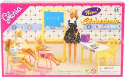 Vytvorte doma vlastnú školskú atmosféru so sadou Glorie školská trieda. Tento bohato vybavený set ponúka tabuľu, učiteľský stôl a stoličku, 3 stoličky s opierkami, počítač s klávesnicou, tašky a papierové zošity a testy. Ideálne na kreatívnu hru a rozvoj fantázie detí. Bábiky nie sú súčasťou balenia.