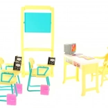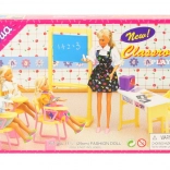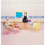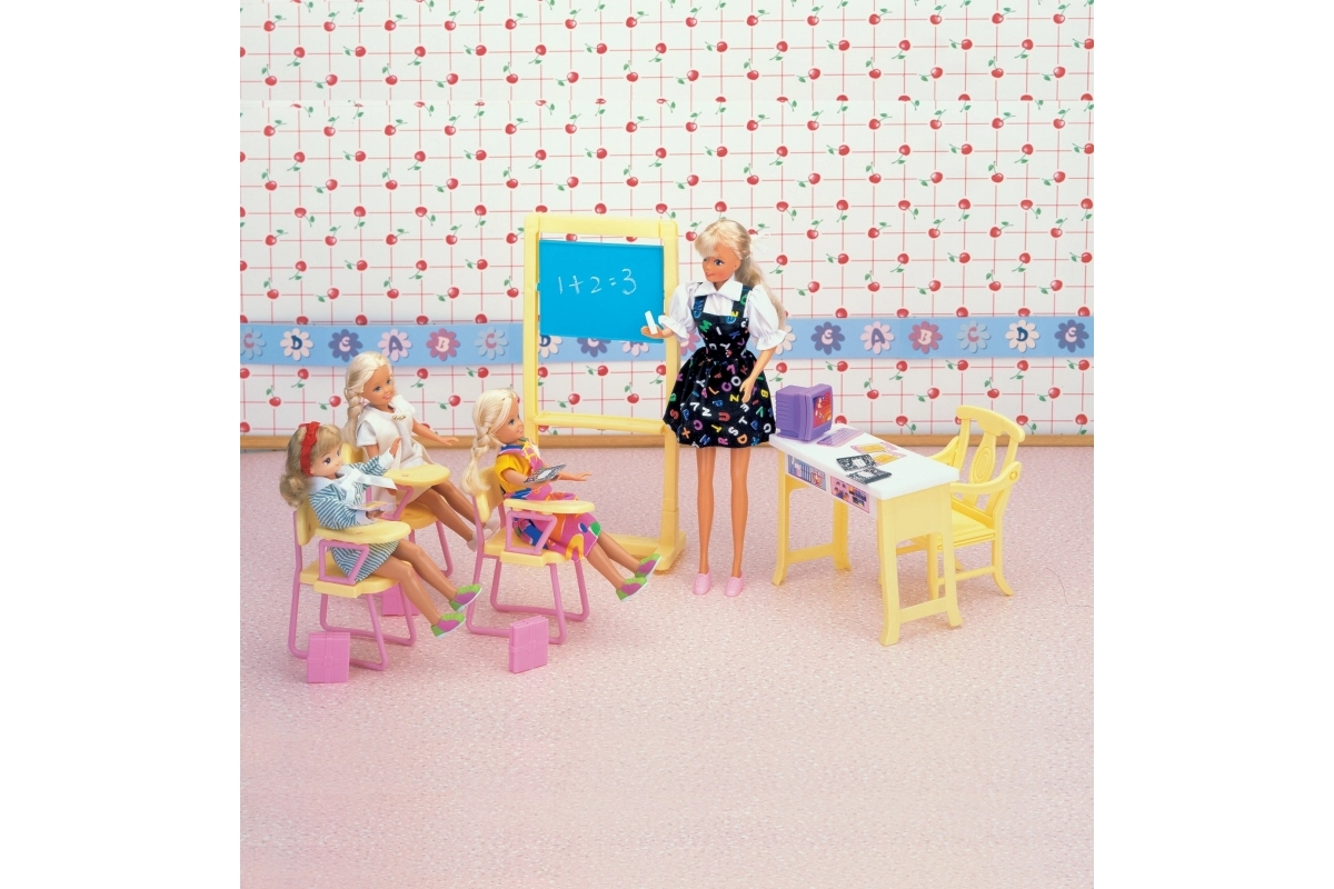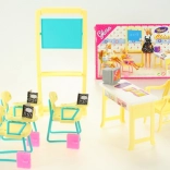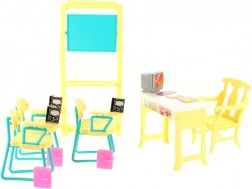 Súčasťou balenia je priestranná tabuľa, učiteľský kútik s počítačom a stoličky pre žiakov. Vďaka kompaktným rozmerom je set kompatibilný s bežnými bábikami a ľahko sa ukladá.