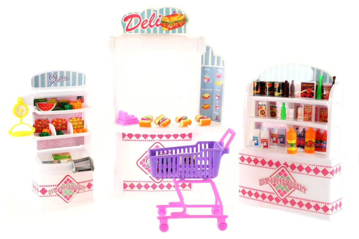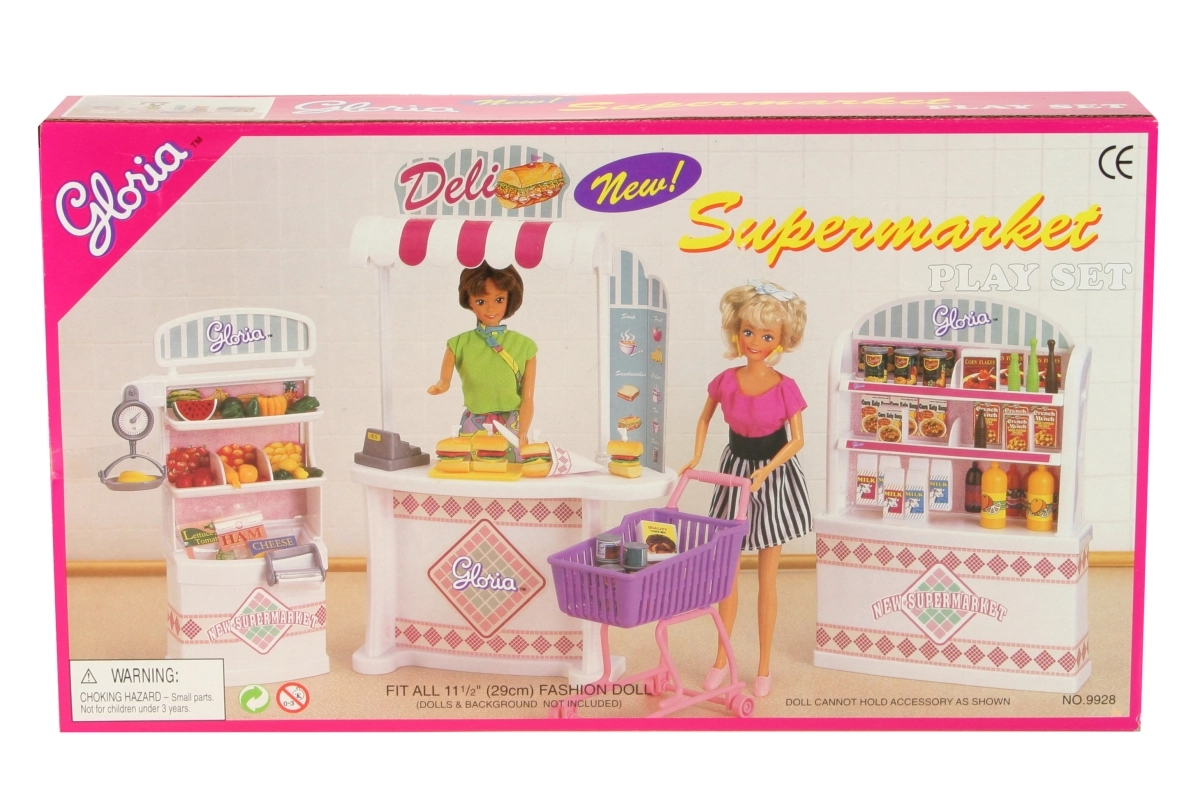 Súčasťou balenia sú aj sendviče so surovinami, ktoré možno od seba oddeliť a znovu skladať, plastový nákupný košík a široký výber potravín: ovocie, zelenina, konzervy, fľaše, mlieko, krabice a ďalšie. Set je kompatibilný s väčšinou bábik bežnej veľkosti (bábiky nie sú súčasťou).