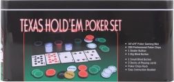 Užite si profesionálny zážitok s domácim pokerovým setom, ktorý obsahuje 200 žetónov a ďalšie doplnky potrebné pre hru v elegantnej plechovej krabici.