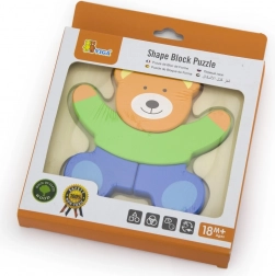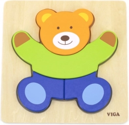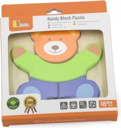Drevené mini puzzle od známej značky Viga pre deti ideálne pre domov aj škôlku. Puzzle sa skladá zo 4 dielov, ktoré spolu tvoria medveďa.